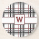 Un motif classique et cosy, en plaid, prend une tournure élégante en combinant une combinaison classique d'un arrière - plan blanc avec des barres noires et grises avec un riche accent rouge. Customisez le monogramme sur ce dessous de verre avec votre initiale pour le rendre unique.