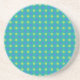 Un Dessous de verre de grès rond chic avec un Polka Dot motif à Neon Green, Bleu éblouissant et Vert émeraude. Une partie de la collection Posh & Painterly 'Blue Moons', basée sur un collage de papier peint à la main par Judy Adamson.
