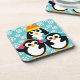 Dessous de verre de fête de pingouin, parfait pour tout l'hiver, parfait à Noël, et si mignon et coloré il vous acclamera tous les jours! Des pingouins sur un arrière - plan de bleu turquoise avec des flocons de neige blancs.