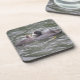 Ce magnifique dessous de verre de liège présente une photo d'un Coot qui nourrit un poisson à sa poussette affamée. L'oiseau adulte a une tache blanche sur le dessus de sa tête et un oeil rouge, tandis que la petite poussette mignonne est moelleuse et grise.