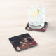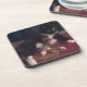 Les douces pattes de chat sont la première chose que vous voyez sur la photographie originale de ZoeSPEAK d'un chat calico, sur ce dessous de verre. Le chat principalement noir et marron est allongé sur une couverture rouge foncé et marron sur un fond sombre, et ses pattes blanches se détachent, étalées devant lui avec les deux centrales croisées l'une sur l'autre. Le poil blanc sur sa poitrine monte jusqu'à son visage, avec ses yeux fixés sur quelque chose à travers la pièce.