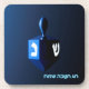Un rêve moderniste bleu métallique contre un arrière - plan sombre et nocturne. Deux des lettres hébraïques trouvées sur un dreidel, une nonne et un shin, brillent brillamment. Le texte hébreu "Chag Chanukkah Sameach" (Hanoukka heureuse) apparaît également en bleu et blanc éclatant.