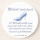 Ne regardez en arrière jamais. Si Cendrillon était allée chercher de retour sa chaussure, elle ne serait jamais devenue une princesse. Vivent chaque jour pleinement, et ne regardent en arrière jamais ; n'importe comment le mauvais quelque chose peut apparaître, nul ne peut dire quel bon peut venir de elle. Vous vivez seulement une fois, ne perdez pas le temps sur des regrets ! Une belle conception avec verre-comme l'écriture, et naturellement, la pantoufle en verre de la Cendrillon iconique.