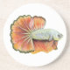 Une aquarelle d'un beau poisson Betta de mâle rouge orange orne ce dessous de verre !