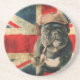 Ce dessous de verre a le drapeau britannique et un design français Bulldog.