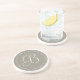 Dessous de verre avec une bordure ronde en aluminium gris monogramme avec un accent de point blanc. Personnalisez avec votre monogramme en utilisant le modèle facile. La couleur de police, le style de police et la taille de police sont personnalisables. Le moyen idéal de protéger les meubles.