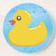 Amusement et mignon en caoutchouc frais en jaune lumineux, sur un arrière - plan de l'eau bleue avec les bulles claires. Une conception propre et pétillante qui est grande pour tous les bain moussant d'utilisation…, baby shower, affaires de lavage de voiture ou de chien, soins des enfants ou thèmes de réception au bord de la piscine d'été. Ayez un grand temps avec le jouet grinçant mignon adorable pour des enfants et des enfants !
