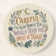 Celebrate your love of reading with this humorous witchy bookworm design, featuring a quaint toad, open book, and celestial moon. This vintage-inspired piece is a great warning for anyone who underestimates the power found within the pages of a dangerous book. These coasters are perfect for your reading nook!