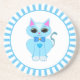 Dessous De Verre En Grès Caricature chaton bleu clair mignon & rayons