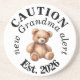 Surprise a soon-to-be grandma with this adorable "CAUTION new Grandma alert" design featuring curved text, soft teddy bear artwork, and customizable "Est. 2026" date. Perfect for baby announcements, pregnancy reveals, or gifting to a new grandmother. Cute, fun, and full of excitement for the new arrival! A wonderful keepsake gift for Mother's Day, gender reveals, or family celebrations.