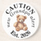 Surprise a soon-to-be grandpa with this adorable "CAUTION new Grandpa alert" design featuring curved text, soft teddy bear artwork, and customizable "Est. 2026" date. Perfect for baby announcements, pregnancy reveals, or gifting to a new grandfather. Cute, fun, and full of excitement for the new arrival! A wonderful keepsake gift for Father's Day, gender reveals, or family celebrations.