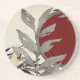 Le dessous de verre élégant en grès présente un design abstrait artistique dans une palette de couleurs crème, bordeaux et gris. Un dessin abstrait artistique présente une feuille d'aquarelle et une composition géométrique en cercle aux tons bordeaux et gris avec accents noir et or sur un arrière - plan d'ivoire crémeux.