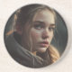 A painting of a girl in a circle, in the style of réaliste hyper-detailed rendering, detailed character illustration