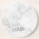 Classic design features personalized 3 letter initial monogram in grey classic serif font style on white marble background.