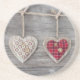 Dessous De Verre En Grès Coeurs au-dessus d'un Tableau en bois