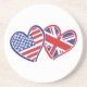 Dessous De Verre En Grès Coeurs du drapeau américain et britannique