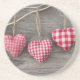 Dessous De Verre En Grès Coeurs rouges sur le Tableau en bois