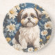 Dessous De Verre En Grès Cute Chih Tzu Chien Blanc Fleurs De Faisée