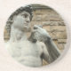 Dessous de verre ronds en grès avec l'image d'une réplique du David de Michel-Ange sur la Piazza Della Signoria à Florence, Italie. Voir dessous de verre en plastique carré correspondant. Voir l'ensemble de la collection de Dessous de verre Italie dans la section HOME.