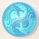 Dessous De Verre En Grès Dragons de Yin Yang, bleu-clair