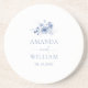 Ajoutez une touche d'élégance intemporelle à votre table mariage avec ce dessous de verre en grès personnalisé avec des fleurs d'aquarelle bleu poussiéreuses douces. Magnifiquement décoré avec les noms du couple et la date mariage, ce dessous de verre durable et absorbant fait une faveur parfaite ou gardez l'amour pour vos invités. Idéal pour des thèmes mariages romantiques et d'inspiration nature.