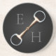 Pour les équestres et les amateurs de chevaux, ce dessous de verre présente une illustration en trompe l'oeil d'un morceau de serpent d'éggbutt en cuivre entre deux monogrammes. Vous pouvez utiliser vos initiales dernières et initiales de votre nom ou celles d'un couple.