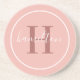 Dessous De Verre En Grès Élégant rose rond personnalisé Monogramme initial
