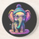 Dessous De Verre En Grès Eléphant bébé mignon avec lunettes et Beanie