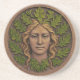 Une Femme Verte sculptée dans le bois avec de la peinture appliquée aux feuilles de chêne et cheveux. Également connu comme tête de feuillage, le Green Man/Wild Man, est un motif d'architecture et d'art, un visage composé ou complètement entouré de feuillage, le plus souvent s'étalant du centre du visage. Outre une fonction purement décorative, l'homme vert est interprété comme un symbole de renaissance, représentant le cycle de la nouvelle croissance qui se produit chaque printemps. Trouvé dans de nombreuses cultures de plusieurs âges à travers le monde, l'Homme Vert est souvent apparenté à des divinités de végétation naturelle. L'équivalent féminin de l'Homme Vert est souvent appelé la Femme Verte ou la Sheela-Na-Gig. Ces personnages, souvent représentés avec une couronne feuillue ou des cheveux luxuriants, symbolisant son lien avec le monde naturel, sont associés à la fertilité, la nature et la nature sauvage. Dans certains contextes, la "Femme sauvage" ou le "Glaistig" (un esprit marin dans le folklore écossais) peuvent également être considérés comme des équivalents féminins de l'Homme vert, représentant différents aspects de la sauvagerie et du pouvoir de la nature.