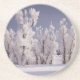 Dessous De Verre En Grès Frost a couvert les arbres et la barrière, le
