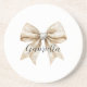 Dessous De Verre En Grès Glitzy Silver Cream Bow