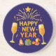 Celebrate the New Year with this warm golden festive illustration featuring Santa figures, gifts, shining stars, and elegant party elements. A bright and joyful design that adds a magical touch to every New Year celebration