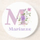Dessous De Verre En Grès Initiale Plus Nom & Fleurs Design