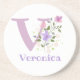 Cadeau pour Veronica, ou changer le nom et la lettre à votre propre choix. Le design présente Monogram & Name avec Fleurs de chaque côté dans un style pastel couleur eau. Le nom de l'exemple est Veronica. Peut être pour toute personne avec un nom commençant par V.