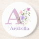 Dessous De Verre En Grès Initiale Plus Nom & Fleurs Design