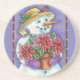 Dessous De Verre En Grès Jolie fille de Noël bonhomme de neige avec poinset