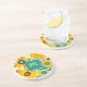 Dessous de verre de fleurs d'art folklorique jaune et turquoise. Ajoutez des initiales dans la zone personnalisée.