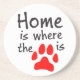 Un jeu de mots avec la citation "Home is where the heart is", ce dessous de verre en grès a les mots "Home is where the [image empreinte de patte] is", avec l'image empreinte de patte en rouge, représentant le "coeur". Le cadeau idéal pour les amoureux des animaux de compagnie.