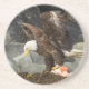 Décoré avec l'image d'un aigle à tête blanche (Haliaeetus leucocephalus) saisissant la carcasse d'un sébaste (Sebastes ruberrimus) Yelloweye avec ses talons sur la côte rocheuse de la baie Blackstone, dans le détroit Prince William de l'Alaska. Par Ted Raynor
