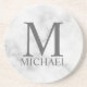Dessous De Verre En Grès Marbre blanc Monogramme personnalisé et nom