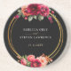 Elégant dessous de verre mariage chic rouge bordeaux et noir avec de belles fleurs et des feuilles verts. Une fusion enchanteresse d'élégance et de charme gothique. Ces belles invitations sont dans des tons riches noir et rouge. La calligraphie est élégante et chic et se customise facilement. Invitations de mariage à fleurs romantiques et modernes avec des couleurs classiques qui ne sortent jamais du style.