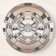 Ce dessous de verre contemporain présente une conception géométrique abstraite sophistiquée de rectangles et de carrés qui ressemble à un labyrinthe circulaire imbriqué. Le motif noir est placé sur un arrière - plan en bronze dégradé.