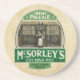 Une publicité irlandaise vintage de bière blanche comportant un gardien de taverne se tenant dans le fron de l'établissement. McSorley établi en 1854.