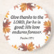 Embrassez l'esprit de gratitude avec notre Collection Give Thanks, inspirée par le verset intemporel de la Bible, "Remerciez le Seigneur, car Il est bon; Son amour perdure éternellement" (Psaume 107:1). Cette collection est un rappel sincère de la bonté et de l'amour indéfectibles de Dieu. Chaque pièce est conçue avec soin pour vous aider à express votre gratitude et partager ce message puissant avec les autres. Que vous soyez en train de décorer votre maison, de donner à un être cher ou simplement de chercher une inspiration quotidienne, la collection Give Thanks est conçue pour élever votre esprit et garder l’accent sur la bonté durable de Dieu.
