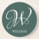 Dessous De Verre En Grès Monogramme Émeraude Élégant Personnalisé Initial