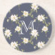 Dessous De Verre En Grès Monogramme floral blanc bleu marine