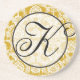 Dessous De Verre En Grès Monogramme jaune et gris Damas
