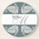 Les dessous de verre de monogramme d'anniversaire de mariage avec des flourishes conçoivent. Personnaliser avec votre monogramme et nom de famille.