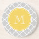 Dessous De Verre En Grès Motif Quatrefoil gris, Monogramme jaune
