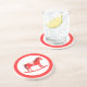 Ce magnifique dessous de verre de Noël en grès présente une image art numérique d'un mignon cheval à bascule de style scandinave. Le cheval est rouge avec une crinière rouge foncé, la queue et les sabots. Le cheval sympathique sourit. Il a une selle blanche et des rois avec de jolis motifs de style Scandi rouge sur la selle, y compris le soleil, la lune et les étoiles, les coeurs et les fleurs. La base du cheval rocking est rouge et est couverte de feuilles blancs. Le design a été inspiré par le cheval suédois Dala.